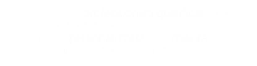 L’obiettivo dello Studio è mettere a disposizione del cliente le soluzioni e le scelte di diritto come opportunità e valore aggiunto per svilupparsi e crescere, affrontando insieme le sfide e le problematiche, sia in ambito stragiudiziale che nel contenzioso.